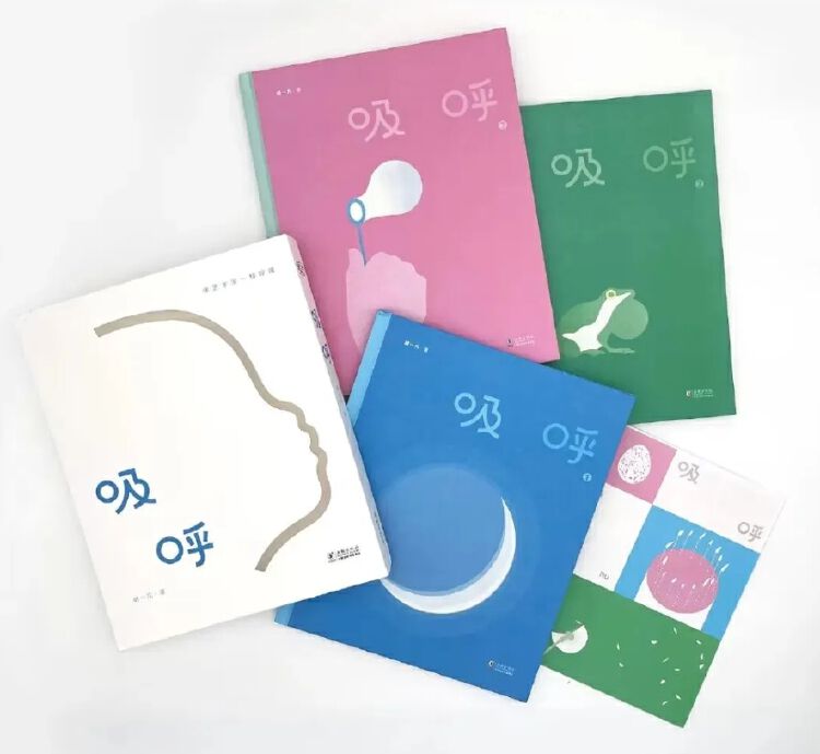 “吸”与“呼”两字的转换与插图构成了诗意的空间,吸引小读者饶有兴趣地翻阅着、品味着。这种近似无字书的设计呈现,使读者沉醉于绚烂又宁静的世界,整体设计概念突破了文化、年龄和语言的限制。