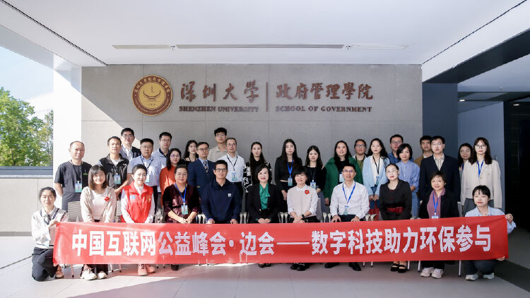 11月25日上午,由深圳大学政府管理学院联合深圳国际公益学院与深圳市志愿者河长联合会共同举办的“中国互联网公益峰会·边会——数字科技助力环保参与”主题论坛在深圳大学丽湖校区召开。本次论坛获得了腾讯公益慈善基金会的资助,学者、企业代表与社会志愿服务代表共聚一堂,围绕互联网经济模式下,数字技术如何赋能环境治理、助力公众环保参与展开深入交流。