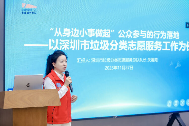 深圳市垃圾分类志愿服务总队队长关媛苑则以深圳市垃圾分类的现状为例,对如何实现公众环保参与的行为落地进行了分享。