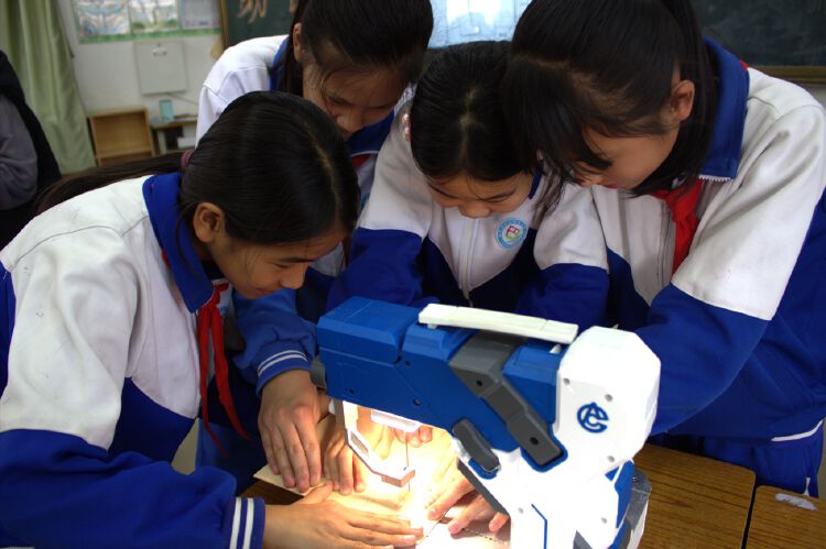 在惠东县稔山镇范河小学,来自深职大经济学院的实践团队,面向该校450名小学生开展“启发科创思维、锻炼动手能力”的科创公益活动。大学生们把他们研发的安全切割锯带到教室,4天时间里,分年级分小组开展了“创意时钟”“华容道”“个性收纳盒”等项目制作中。小学生一边学、一边做,收货了自己制作的作品的喜悦,也感受到了工匠精神的本质。