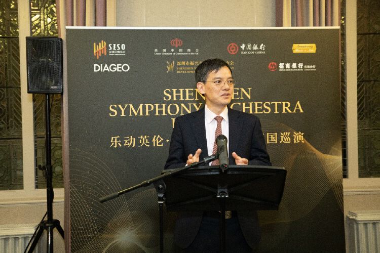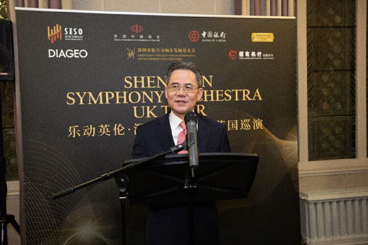 郑泽光大使在致辞中对深圳交响乐团首次英国巡演表示祝贺,向支持此次巡演的中英人士和机构表示感谢。他介绍了刚刚结束的中国“两会”主要成果;表示“两会”提出加快发展新质生产力,以科技创新引领产业创新,全面深化改革开放,进一步促进中外人文交流;强调中国坚持以中国式现代化全面推进强国建设、民族复兴,全面推进高质量发展,这将为中英务实合作和文化艺术领域交流带来更多新机遇;希望中英文化艺术界加强交往与合作,为增进两国人民友好注入新的活力。