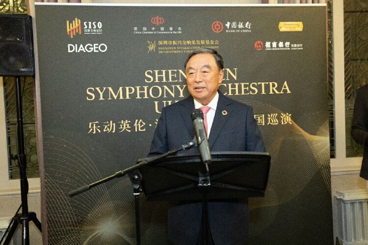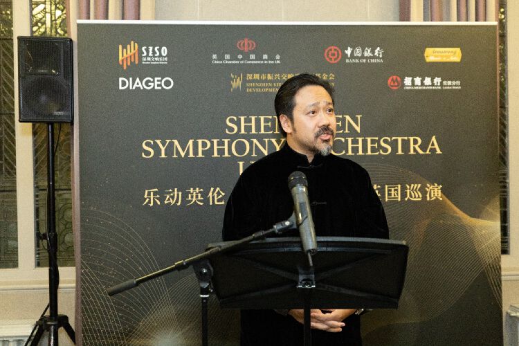 英国中国商会主席、中国银行伦敦分行行长方文建在致辞中,高度评价了深圳交响乐团此次跨洋来英巡演的重要意义,他认为此次巡演为中英两国间的文化交流营造了一个双方知音共聚的难得机会。此次伦敦音乐会得到了英国中国商会成员——中国银行及招商银行伦敦分公司的支持,对此方文建表示,商会很荣幸支持中国交响乐走向英国、走向世界,这标志着中国文化传播的一个新起点,借此机会可以更好地推动中英文化交流,增进沟通理解,加强民间外交,传播中国故事。