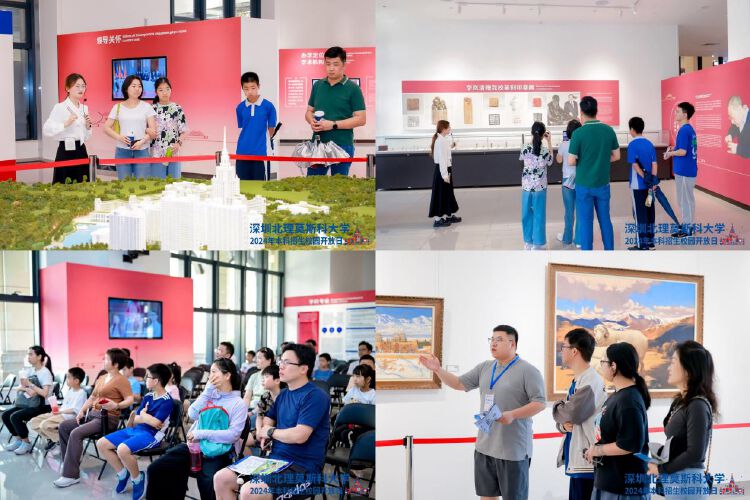 深北莫学生志愿者团队也在现场带领参加校园开放日的市民朋友参观校史馆、中俄油画展,让市民朋友们都能亲身感受深北莫丰富多彩的校园生活和浓厚的艺术文化氛围。