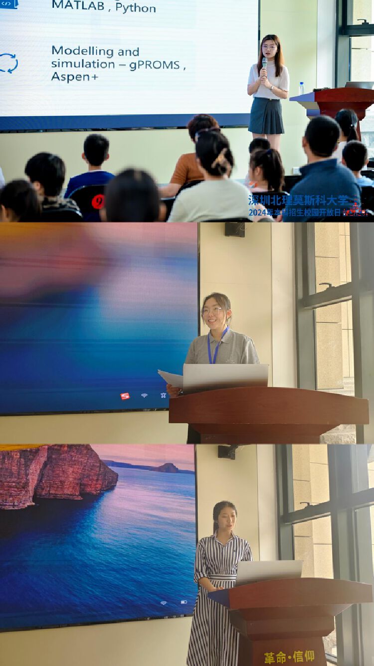 2021届本科毕业生、伦敦大学学院2023年硕士毕业生、华为技术公司嵌入式软件测试工程师李欣欣,2021届本科毕业生、2023届硕士优秀毕业生、现就职于深北莫汉语中心的王馨悦,以及2020级在校生、 2023年深北莫年度人物冯钰垚同学,向考生及家长分享了在校学习体会与收获,讲述打牢基础学科知识及其对职业发展的帮助等。