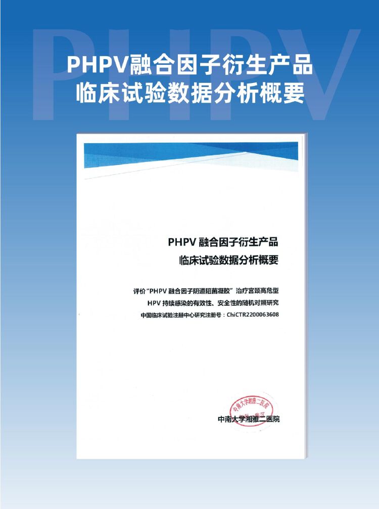 近日,中南大学湘雅二医院符淳教授课题组与福莱明生物联合申报的临床试验, “评价PHPV融合因子阴道阻菌凝胶治疗宫颈高危型HPV持续感染的有效性、安全性的随机对照研究(中国临床试验注册中心研究注册号:ChiCTR2200063608)”,完成数据分析,统计结果证实:“PHPV融合因子阴道阻菌凝胶” 可通过物理作用有效降低宫颈高危型HPV持续感染患者的病毒载量,抑制癌基因E6/E7的表达,改善阴道微生态,预防宫颈病变,临床使用安全性高,无任何毒副反应报告。