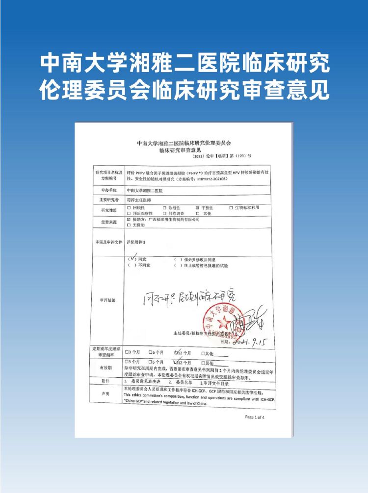 针对HPV感染的临床防治现状,福莱明生物筛选出一种独特的抗病毒抗细菌生物防御蛋白,并创造性的将粘膜损伤修复肽段与生物防御肽段,以及载运辅助肽段,重组表达为抗病毒抗细菌功能更强的重组类胶原生物防御蛋白,命名为“PHPV融合因子”,获得国家发明专利和国际基因蛋白数据库收录。中科院武汉病毒所临床前实验证实,融合因子可通过电荷吸附的物理作用与病毒核酸蛋白(例如癌基因E6/E7)结合,破坏其空间结构,抑制病毒核酸蛋白导致的感染与诱导细胞转化。为了解决HPV高危亚型持续性感染的临床治疗难点,福莱明生物开发出“PHPV融合因子阴道阻菌凝胶”,创造性的将大分子防御膜物理机制,与凝胶隔离膜物理机制相结合,开发出一种更好的抑制病毒感染、调节阴道微生态、促进粘膜微小创伤修复,防止病毒自体传播的治疗新方法。为了从循证医学角度证实上述研究,福莱明生物在2021年联合湘雅二医院符淳教授申报了临床试验,获得伦理学批准。