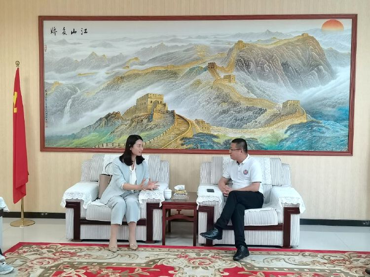 ⇑杨燕书记(左)与周立海总经理(右)交流