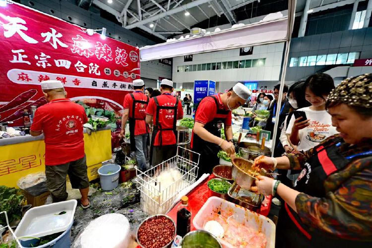 留着口水拍完牛肉面,转个身,就被眼前长长的排队场景惊呆了。抬头一看,“天水麻辣烫”五个字赫然入目。今夏,火爆出圈的“天水麻辣烫”不仅登上热搜头条,也火速登陆第二十届文博会现场。只见操作区热火朝天,等待区人流不息。端着热气腾腾的“麻辣烫”,观众们脸上都是慢慢的幸福感。大师傅告诉记者,天水麻辣烫是甘肃麻辣烫组成部分,是带有地域特色的麻辣烫吃法,以手擀粉、麻辣菜为特色,一般包括宽粉、土豆、辣子三种元素,口味鲜香、麻辣、令人回味无穷。