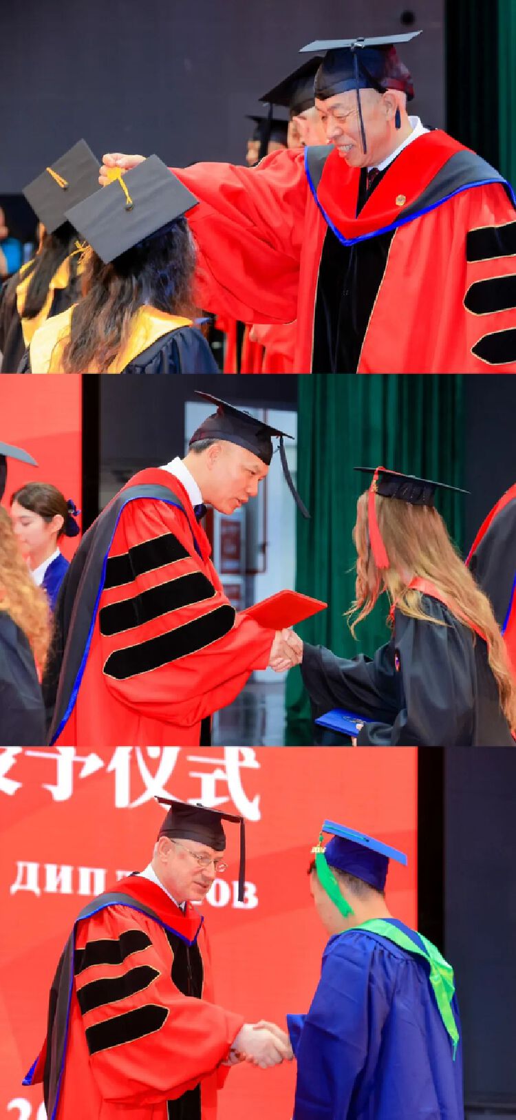 随后,伊万琴科第一副校长宣读深圳北理莫斯科大学学位授予决定。李和章校长、朱迪俭书记、伊万琴科第一副校长以及各系系主任分别为毕业生拨穗正冠,颁发学位证书和毕业证书。