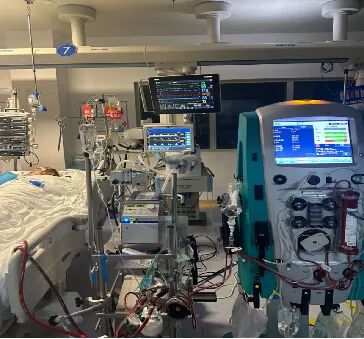 当天晚上23点30分。ECMO小组紧急完成置管上机,待ECMO顺利转机的那一刻,看着血液从暗红色变成鲜红色回输到患者体内,就像是源源不断地将希望赋予了患者。