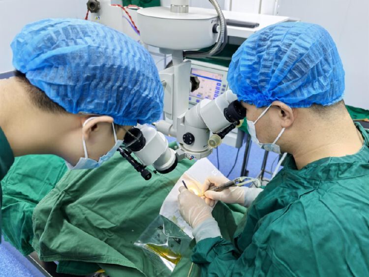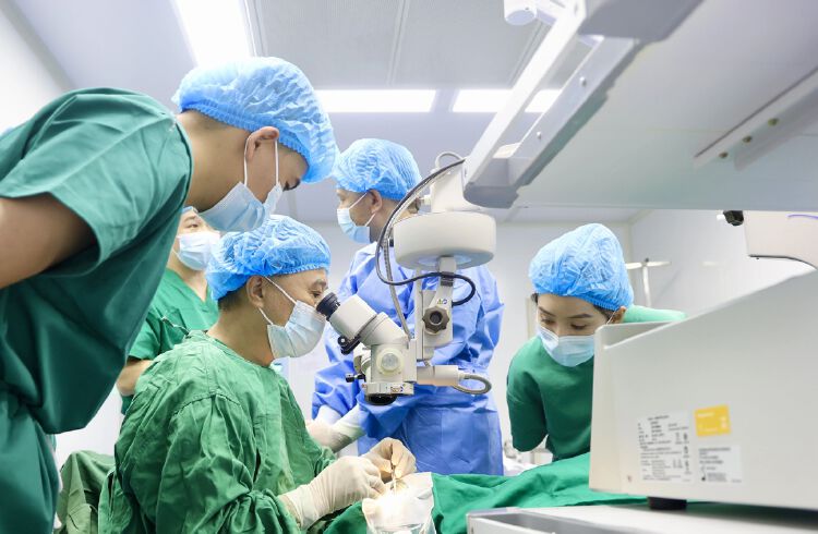 深圳市眼科医院副院长张国明(左)正在为患者做手术