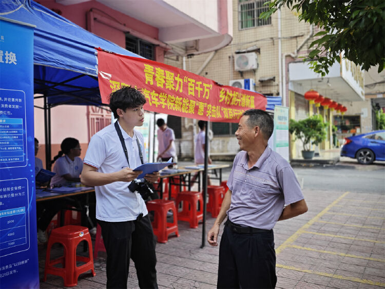 炎炎夏日,一场生动的新能源汽车知识科普宣传活动在黄埠镇内的社区活动中心及主干街道进行着。新能源汽车知识科普、新能源汽车置换补贴政策、双碳知识及交通安全等都是突击队员宣传的内容。除了设点宣传外,突击队成员还主动前往附近商铺、居民家中进行走访调研。在走访过程中,发现部分居民对新能源汽车表现出浓厚兴趣,团队成员详细介绍了新能源汽车的性能优势、使用成本优势、充电设施建设等居民关心的问题,还讲解了惠州市新能源汽车“以旧换新”补贴政策等。团队成员通过生动的案例和直观地数据对比,让居民们清楚地认识到新能源汽车不仅环保节能,还能在日常使用中大幅度降低使用成本。