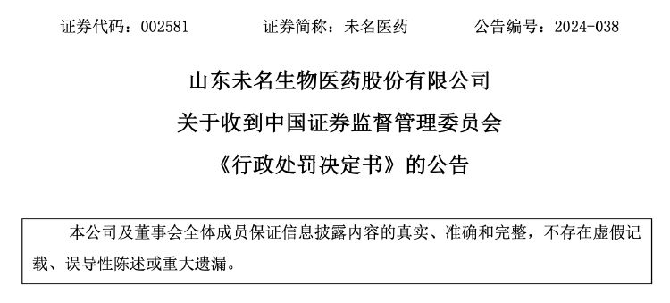 时任未名医药董事长潘爱华受到警告,并罚款240万元,时任董事罗德顺受到警告,并罚款140万元,时任董事杨晓敏受到警告,并罚款120万元罚款;证监会同时对潘爱华采取10年证券市场禁入措施,对罗德顺、杨晓敏分别采取5年证券市场禁入措施。