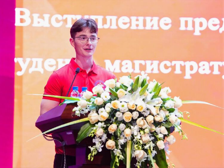 计算数学与控制系应用数学与信息技术专业2024级硕士乔治·沃龙佐夫作为研究生新生代表和国际学生代表发言。他建议同学们积极参与学校各类校园活动,这些活动有助于全面发展,提高语言和演讲技巧,并结识志同道合的朋友。他强调,要珍惜大学时光,学会自我管理和时间规划,并提醒大家充分利用学校资源,克服语言学习的挑战。乔治表示,无论是在专业课程还是语言学习上,都应全力以赴,并通过多样活动提升综合素质,相信每位学子都将收获丰富的知识与美好的回忆。