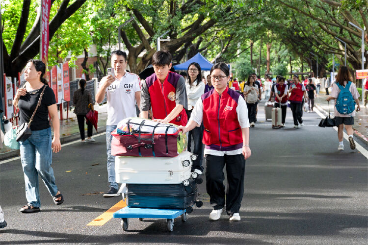 考虑到来自五湖四海的新生路途不便,学校在宝安机场、深圳北站、深圳站、深圳东站安排了9辆大巴车、4条线路的接机接站服务。在机场的到达厅、各站点接站口和上车点以及校园内外都有举牌、引导、行李搬运志愿者一路护送,给新生提供路径引导、校园介绍、行李搬运、答疑解惑等服务。据统计,此次迎新全校共招募学生志愿者800余人次,志愿服务长达1600小时。