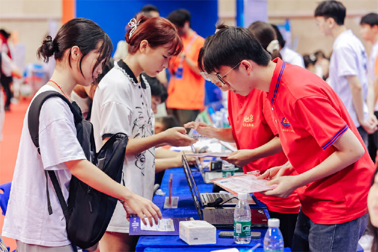 另一边,一组中国风的书签成为迎新现场的一抹亮色。电子与通信工程学院不止·蓝美育工作坊的同学们邀请新生亲手制作手工书签,在互动体验中感受艺术的魅力。该工作坊面向零基础艺术爱好者,定期开展传统文化实践活动,以美为媒,提升学生的审美和人文素养。