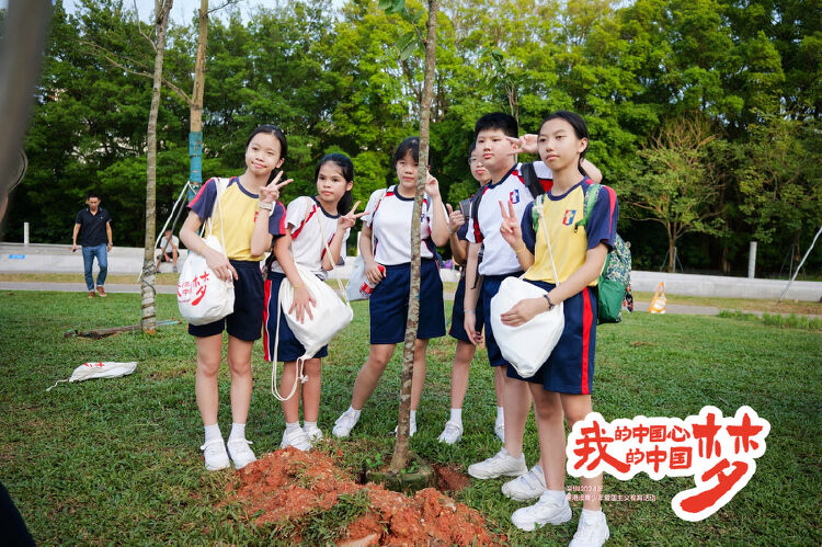 植树现场,粤港澳青少年与志愿者们手持铁锹、水桶等工具,或两人一组,或三人一队,有的挖坑、有的扶苗、有的培土、有的浇水,各个环节衔接紧密,配合默契。“大家通过植树活动,增进了彼此之间的交流与合作,培养了团结协作的精神,更多地了解自然、尊重自然、保护自然,从而传承和弘扬生态文明的理念和精神。”香港纯阳小学刘芯蕊同学介绍说。