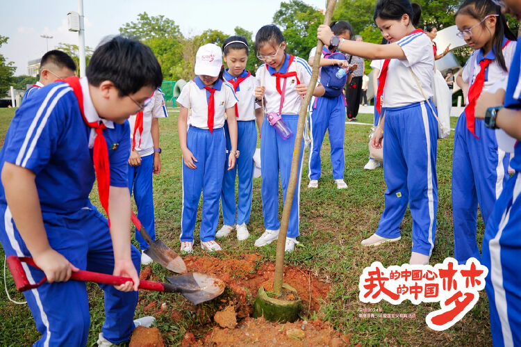当天爱国主义教育活动的最后一个环节,青少年们迎来了一场意义非凡的公益植树活动。作为去年植树活动的延续,在去年“同源林”的基础上,继续扩大手植树规模,以此增强大家的环保意识,推动生态文明建设,共同守护我们赖以生存的家园。