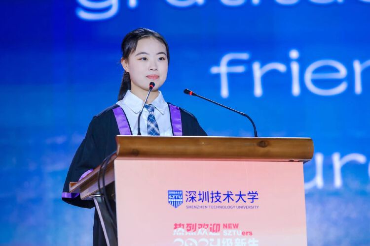 外国语学院2024级硕士研究生魏怡萍作为研究生新生代表发言。她表示要践行“唯实求精”的校训,充分把握深圳得天独厚的优势与深技大提供的良好条件,不断拓宽国际视野,持续发掘自身创新能力。在追求卓越的道路上奋斗不息!