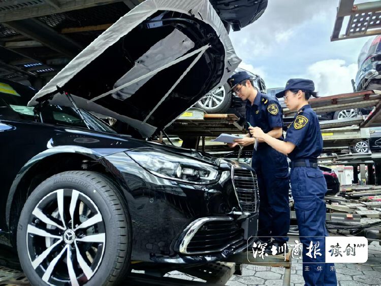 穗东海关关员快速验放“一票多车”出区汽车。何映虹摄