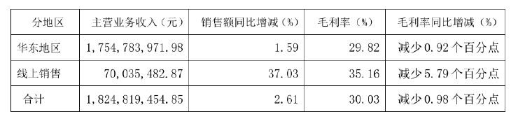 分渠道来看,前三季度,一鸣食品在华东地区实现营收17.55亿元,同比增长1.59%,毛利率同比减少0.92%;线上销售实现营收7003.55万元,同比增长37.03%,毛利率同比减少5.79%。