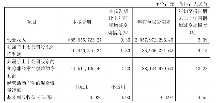 具体来看,2024年前三季度,一鸣食品实现营收20.58亿元,同比增加5.39%;归属于上市公司股东的净利润约3691万元,同比增加4.13%。其中,第三季度,一鸣食品实现营业收入6.86亿元,同比下降0.36%;实现净利润1044.03万元,同比增长1.30%。