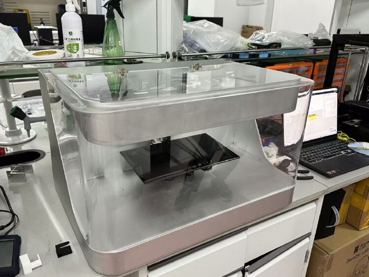 连续碳纤维复合材料3D打印机是由深圳北理莫斯科大学增材制造研究院秦庆华教授团队独立研发。通过整合熔融层积成型技术和连续碳纤维复合材料,团队开发了基于桌面级的连续碳纤维增强复合材料3D打印机,整体机架通过钢强度铝合金制成,提高整体结构框架刚度;打印头内部引入了旋转切刀装置,实现连续碳纤维打印过程中的剪切;整体打印平台配备自动调平和加热功能,确保复合材料打印过程中与打印床的紧密结合;整台打印机模块与Klipper固件结合,搭配自主开发的切片软件,实现了连续纤维复合材料打印过程中的轨迹路径规划设计以及高速稳定的打印。