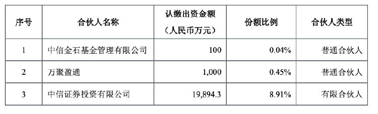 公告透露,万科下属子公司海南万聚盈通企业管理有限公司(以下简称“万聚盈通”,普通合伙人之一)、深圳市万科发展有限公司(以下简称“深圳万科”,有限合伙人之一)与中信金石基金管理有限公司(普通合伙人之一)、中信证券投资有限公司(有限合伙人之一)、泰康人寿保险有限责任公司(有限合伙人之一)签署了《万信金石(南京)商业投资合伙企业(有限合伙)有限合伙合同》(以下简称“《有限合伙合同》”),共同投资设立了“万信金石(南京)商业投资合伙企业(有限合伙)”(以下简称“中信万科消费基础设施基金”)。该基金的募集规模为人民币22.34亿元。