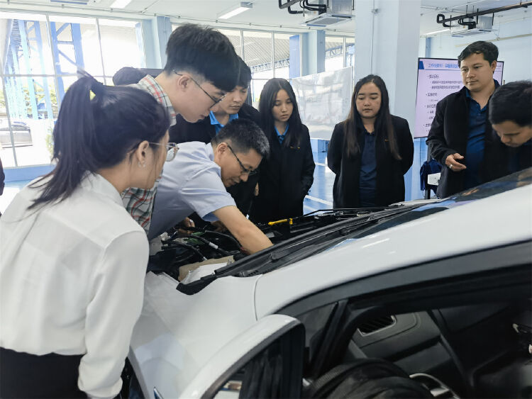 2024年7月,深职大教师在泰国对东方技术学院教师进行新能源汽车技术培训。
