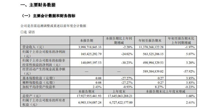 最新财务数据方面,万丰奥威10月26日披露的2024年三季报显示,前三季度公司实现营业收入113.7亿元,同比下降1.97%;归母净利润5.64亿元,同比增长5.07%;扣非净利润4.99亿元,同比增长3.20%。