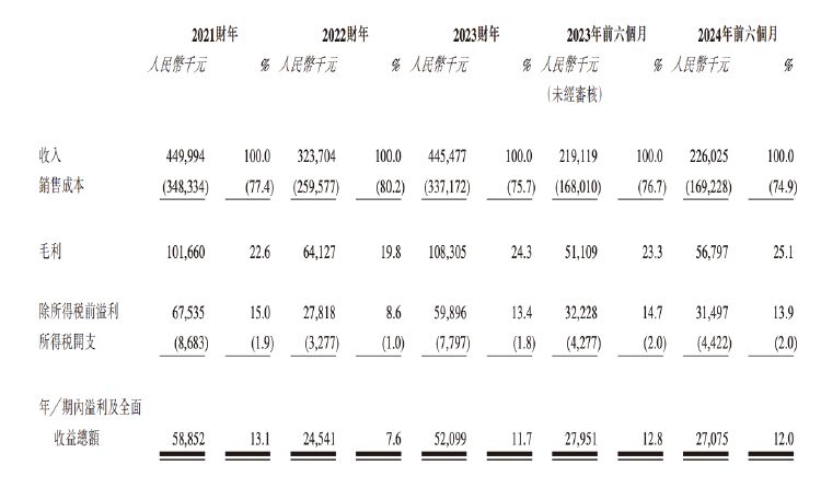 招股书显示,由于COVID-19的不利影响,西普尼的收入由2021财年的4.5亿元下降至2022财年的3.24亿元,2023财年回升至4.45亿元,2024年前六个月约为2.26亿元。